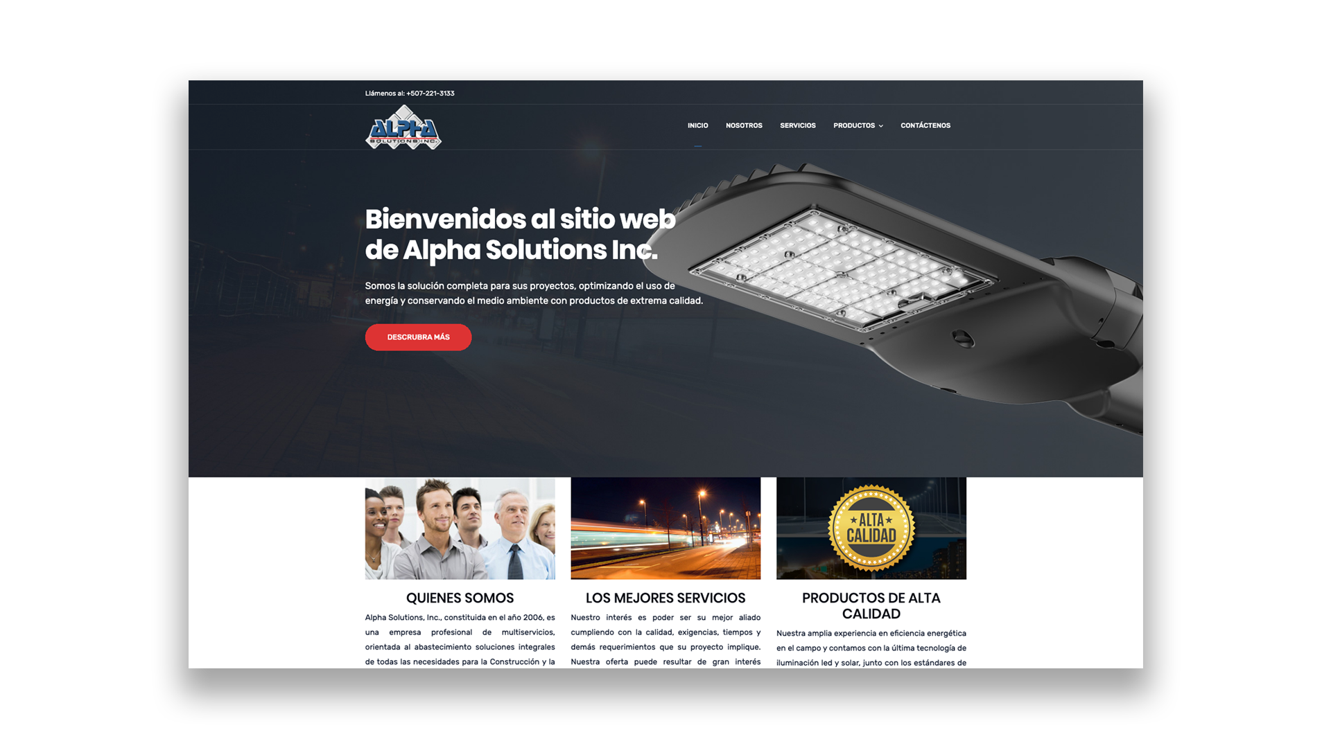 Una página corporativa donde se puede conocer de los productos y servicios que esta misma ofrece. Una empresa con una gran trayectoria en el campo de energia renovable y soluciones que optimizan el uso de electricidad. Desde iluminación hasta celdas solares, herramientas para la señalización vial entre muchas cosas más.